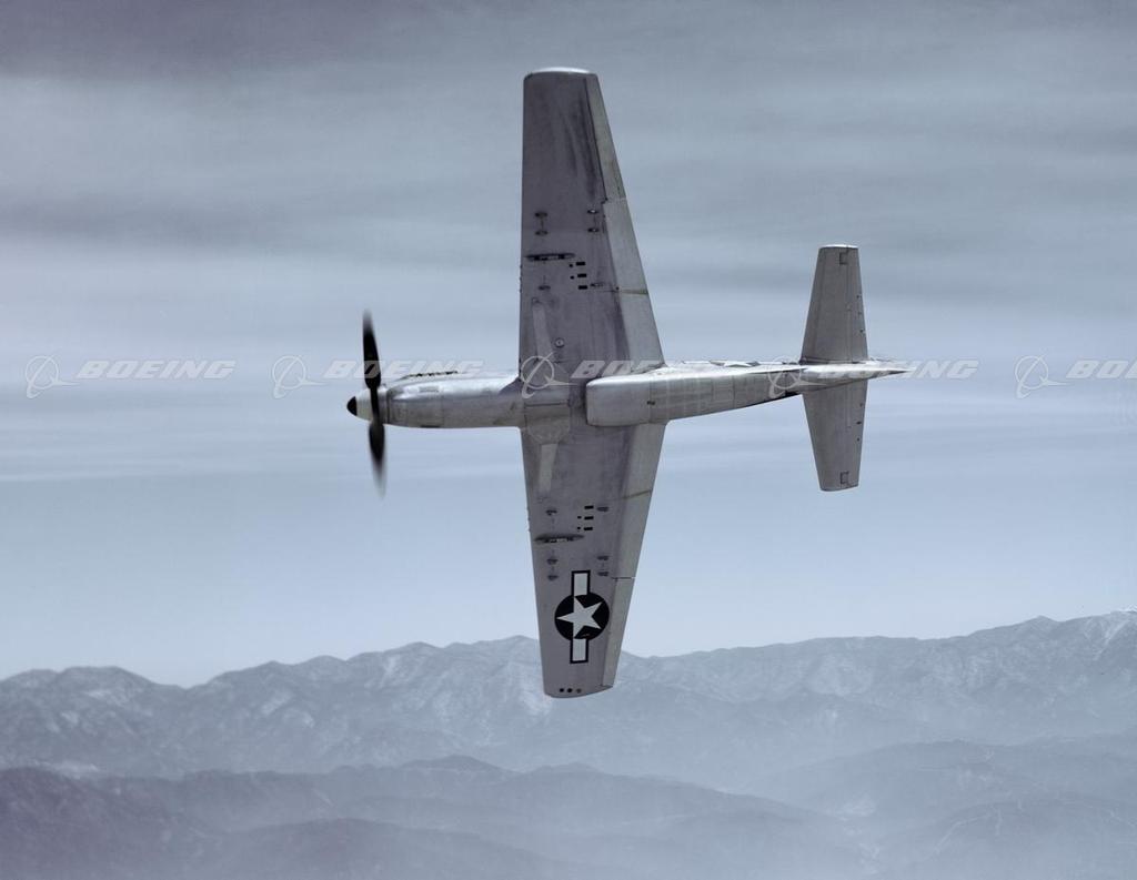 North American Aviation's powerful and agile P-51 was the first single-engine aircraft based in England to penetrate Nazi Germany during World War II. With its superior aerodynamics, the Mustang outperformed enemy planes and went on to establish an impressive aerial record. It first flew in 1941 and was initially designed for the British Royal Air Force for fighter reconnaissance. By war's end North American built 15,575 P-51 Mustangs. The P-51D Mustang had a wingspan of 37 feet and was 32 feet long. Powered by one 1,490- horsepower engine, it flew 437 mph with a range of 2,300 miles.