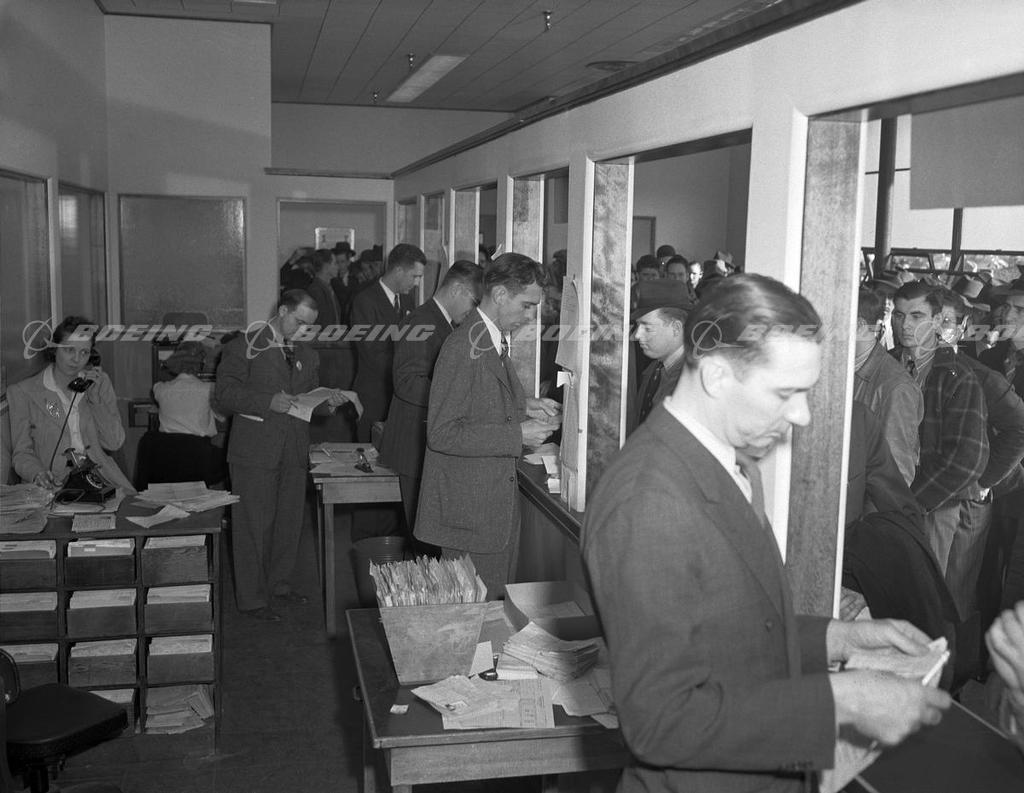 Job Seekers Wait in the Interviewing Lobby, Stearman Aircraft Plant, Wichita, KS