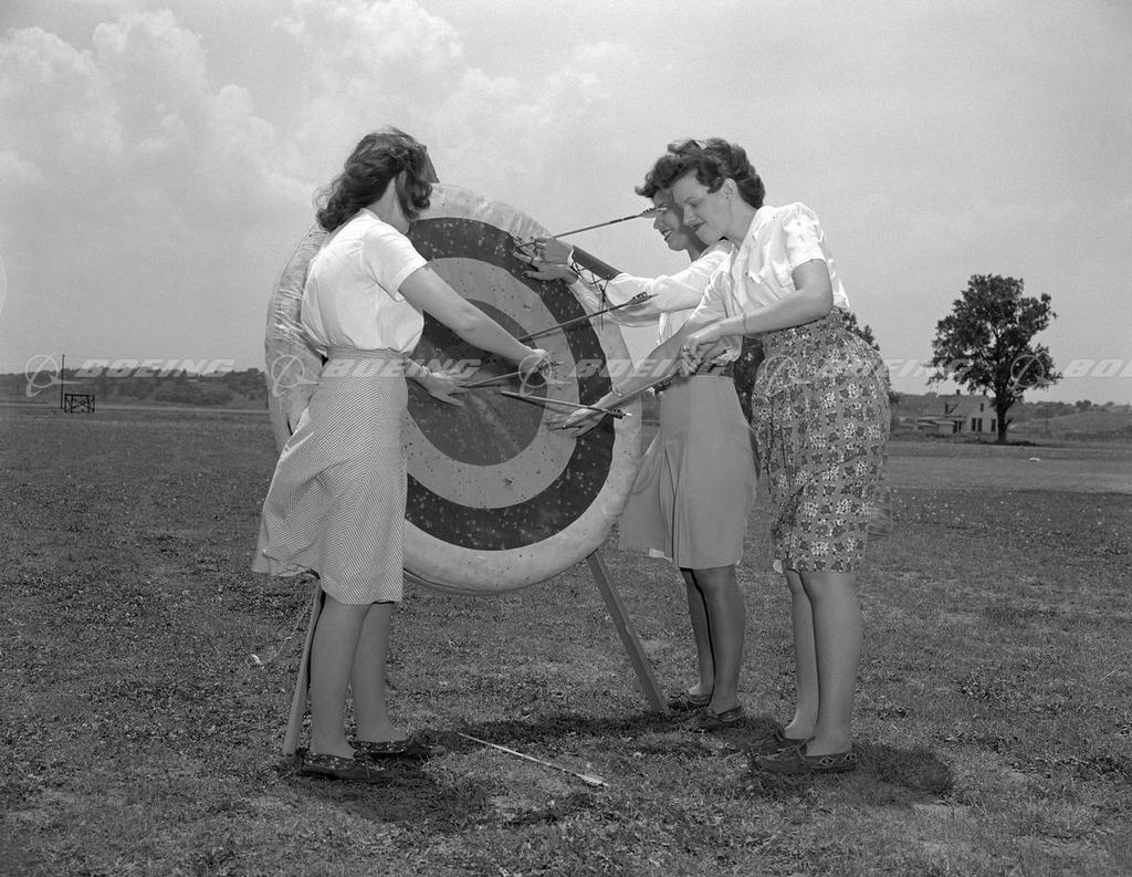 Women Practicing Archery During Lunch Hour at North Amercian Aviation's Kansas City Plant