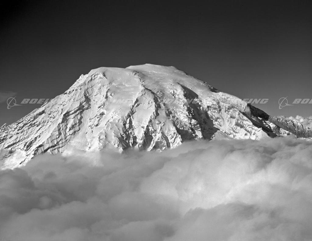 377 Stratocruiser in Flight Over Clouds and Mt. Rainier