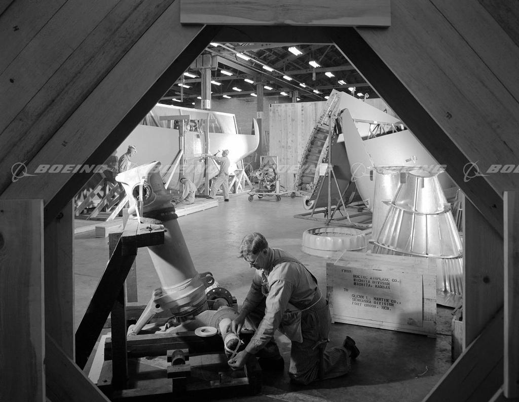 Men and Woman Work on B-47 Stratojet Landing Gear