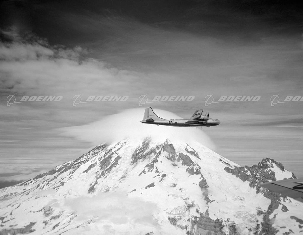 The Boeing B-29 Superfortress, the most technologically advanced airplane produced during World War II, first flew Sept. 21, 1942. The B-29 had many new features, including guns that could be fired by remote control. The crew areas were pressurized and connected by a long tube over the bomb bays. The tail gunner had a separate pressurized area that could only be left during unpressurized flight. At 105,000 pounds, the B-29 was also the heaviest production plane because of increases in range, bomb load and defensive requirements. The B-29 used the high-speed Boeing 117 airfoil, and its larger Fowler flaps added to the wing area as they increased lift. Modifications led to the B-29D, upgraded to the B-50, and the RB-29 photo reconnaissance aircraft. The Soviet-built copy of the B-29 was called the Tupolev Tu-4. A total of 3,970 B-29s were built.