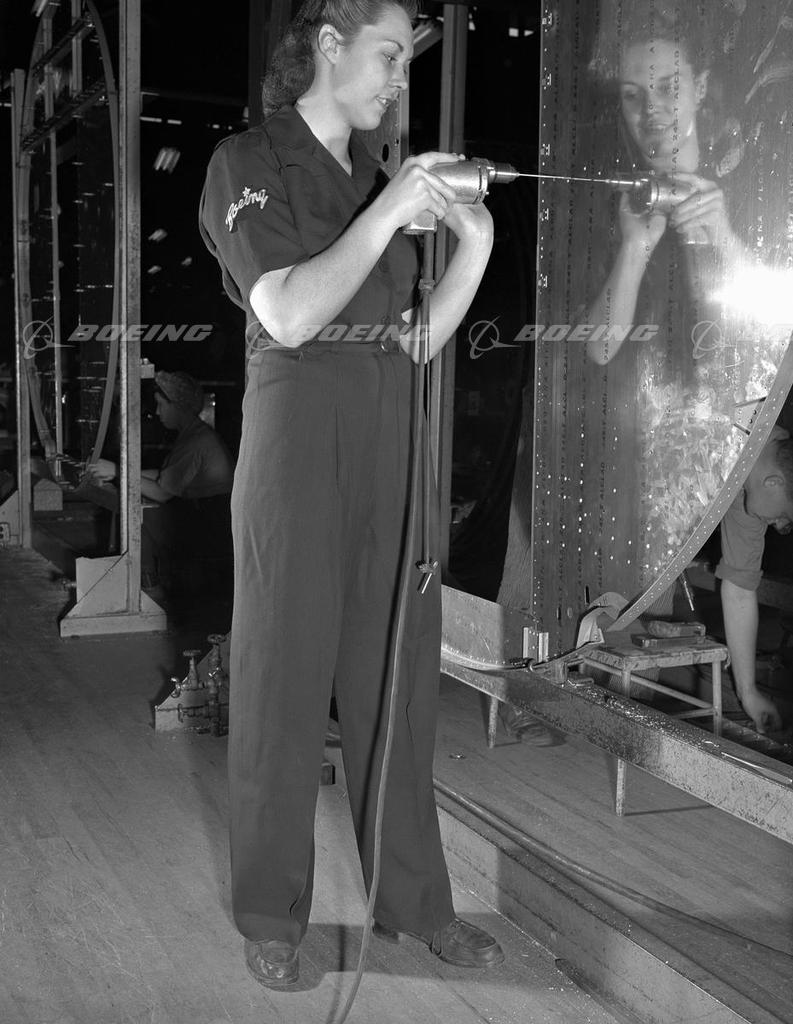 Woman Drilling a B-17 Flying Fortress Tail Turret