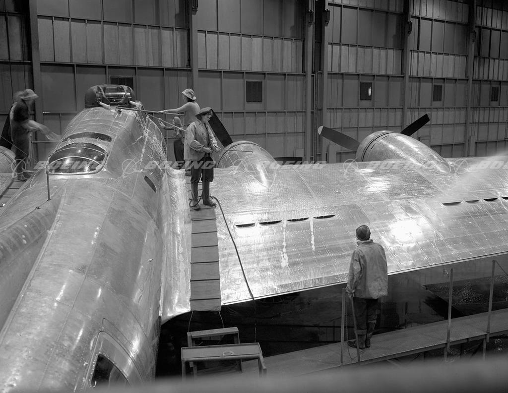 The Allied demand for huge quantities of advanced bombers fueled a rapid increase in production and personnel at Boeing. The large work force of talented engineers and armies of production workers turned out B-17 Flying Fortresses and B-29 Superfortresses in astonishing numbers. Under a unique wartime arrangement, aircraft manufacturers across the country developed techniques for mass production and shared production of the most popular military aircraft, including the B-17s and the B-29s. Thousands of women took up the slack in the work force and helped boost production to an astounding 362 airplanes a month by March 1944.