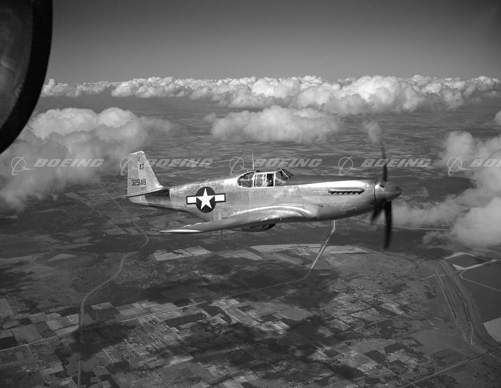 North American Aviation's powerful and agile P-51 was the first single-engine aircraft based in England to penetrate Nazi Germany during World War II. With its superior aerodynamics, the Mustang outperformed enemy planes and went on to establish an impressive aerial record. It first flew in 1941 and was initially designed for the British Royal Air Force for fighter reconnaissance. By war's end North American built 15,575 P-51 Mustangs. The P-51D Mustang had a wingspan of 37 feet and was 32 feet long. Powered by one 1,490- horsepower engine, it flew 437 mph with a range of 2,300 miles.