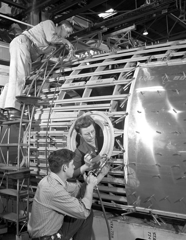 Rasing up a 377 Stratocruiser Tail at Boeing