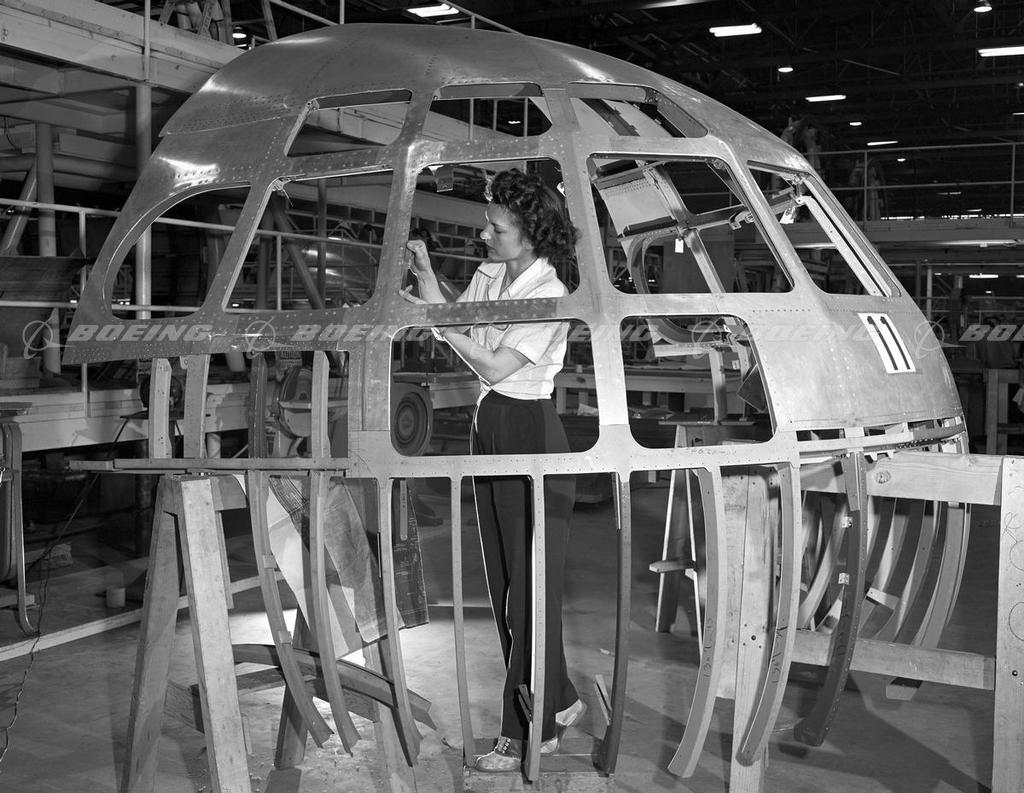 Rasing up a 377 Stratocruiser Tail at Boeing