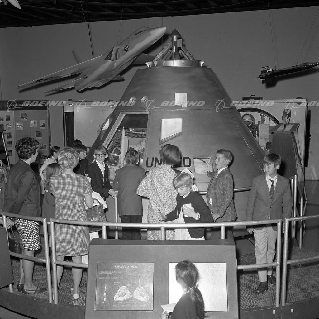 The Apollo program took the first humans to a landing on the Moon on July 20, 1969. The 12-foot Apollo command module was built at North American Rockwell’s plant at Downey, Calif. North American also built a 150-foot-high impact test facility, It looked like a gigantic playground swing and was used to check the module’s structural integrity and impact loads by drop-testing it on water, sand, gravel and boulders.