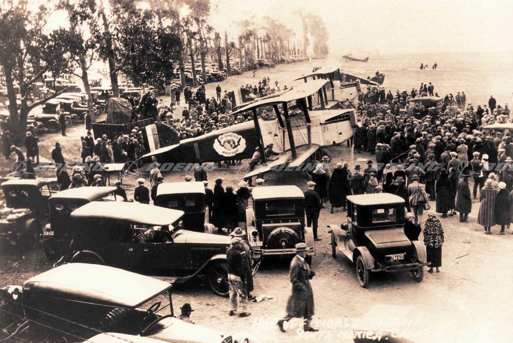 In 1923, Douglas built five Douglas World Cruisers to attempt the first flight around the world. In Seattle, the official starting point for the journey, Boeing employees exchanged the planes' wheels for pontoon floats for the long over-water flights. The planes were named for four major American cities, Seattle, Chicago, Boston and New Orleans. On April 4, 1924, the four took off from Sand Point on Lake Washington on the first leg of their long flight. The Seattle, trapped in fog, crashed on an Alaskan mountainside. After walking ten days, the two-man crew reached safety. The other three DWCs continued on and were kept flying with the help of 15 extra engines, 14 extra sets of floats and duplicates of all airframe parts stashed at various sites around the world. On June 26, they reached Calcutta, India. The DWCs departed Orkney Island in Scotland on July 30, refitted again as seaplanes. On August 3, with nearly three-quarters of the flight completed, the Boston made a forced landing in the mid-Atlantic. The crew was rescued and reunited with the Chicago and New Orleans on September 3 in Nova Scotia. Two days later, the prototype DWC joined the group and was named Boston II, so the original's crew could complete the flight. On September 28, as landplanes, they returned to Seattle. They had logged 27,553 miles in six months and six days, flown over 28 countries, and crossed the Atlantic and Pacific Oceans. The flight was the greatest feat in aviation up to that time and earned Douglas Aircraft Company its motto, First Around the World.