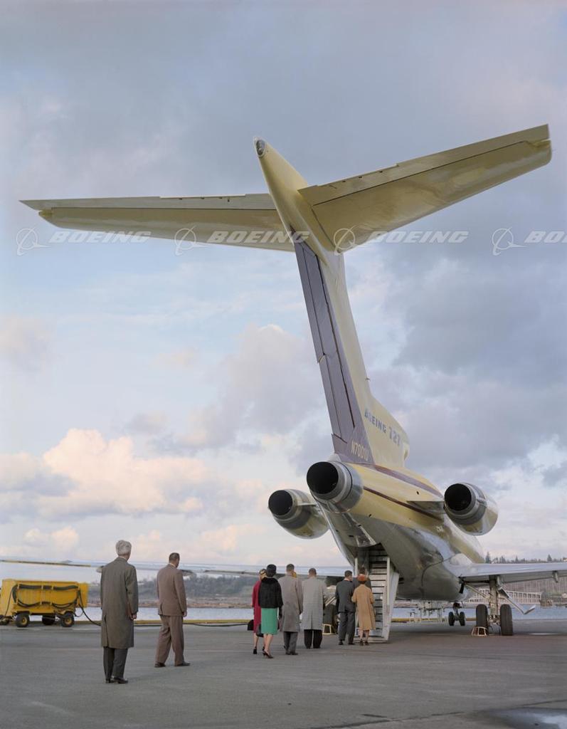 The short-to-medium-range 727 jet, which first flew in 1963, was the only Boeing-built trijet in its time. It was designed to operate out of small airports with shorter runways. The 131-passenger trijet also was the first Boeing commercial jetliner to use an auxiliary power unit (APU). The 727 jet also was built as a freighter and as a “quick change” version, which airlines could convert from a passenger transport to a freighter, or a combination of both, as they chose.