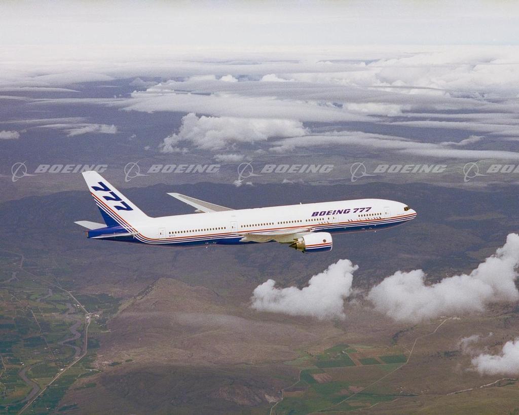 The wide-body Model 777 was the first commercial jet that was 100 percent digitally designed using three-dimensional solids technology. It earned the Collier Trophy for top aeronautical achievement in 1996. The twinjet commercial transport uses fuel efficiently, and its comfortable cabin is very popular with passengers. The 777-200 can take 305 passengers 5,995 miles. The 777-300 can carry 368 passengers 6,899 miles. Launched in February 2000, the 777-200LR and 777-300ER will fly 9,420 or 7,880 nautical miles, respectively.