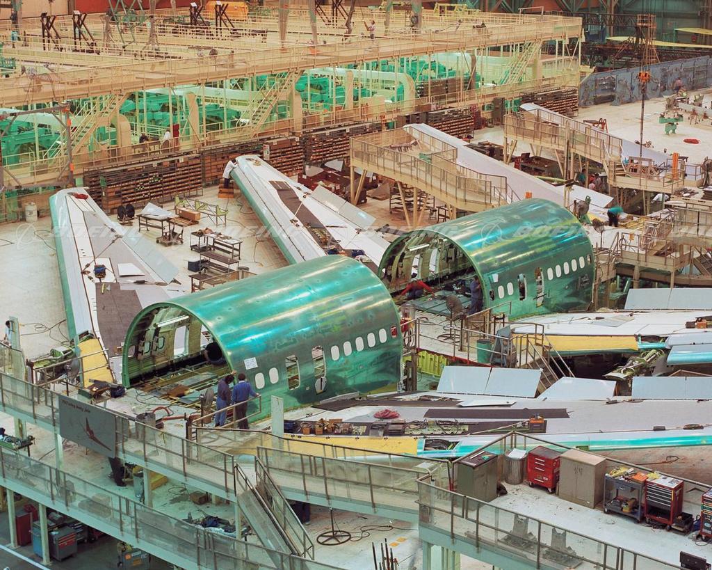 The Boeing 767 family is a complete family of airplanes providing airlines with maximum versatility in the 200 to 300-seat market. It includes three passenger models - the 767-200ER, 767-300ER and 767-400ER - and a freighter, which is based on the 767-300ER fuselage. The 767-200ER has a range of more than 7,500 miles and the 767-300 freighter can haul 60 tons more than 3,700 miles. In 1997, Boeing launched the 767-400ER, which can take 304 passengers more than 7,000 miles. Military versions include the 767 AWACS, which first flew Aug. 9, 1996, and the 767 tanker/transport, launched in 2000, designed to replace the aging KC-135 aerial tankers. In March 2002, the 767 manufacturing program converted to a moving line system, replacing the old station to station method of assembly pictured here.