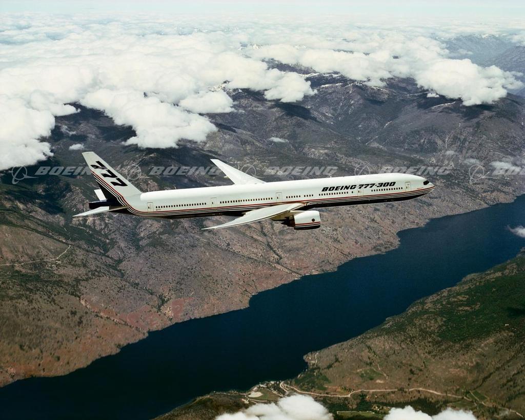 Artist's rendering of the "Stretch" 777-300 which entered service in 1998. On regional and domestic routes, the 777-300 offers similar seating capacity and comfort with much better fuel and crew efficiency than early generation 747s. The 777 wing uses the most aerodynamically efficient airfoil ever developed for subsonic commercial aviation. This advanced wing enhances the airplane's ability to climb quickly and cruise at higher altitudes than competing airplanes while achieving higher cruise speeds. It also allows the airplane to carry full passenger payloads out of many high-elevation, high-temperature airfields.