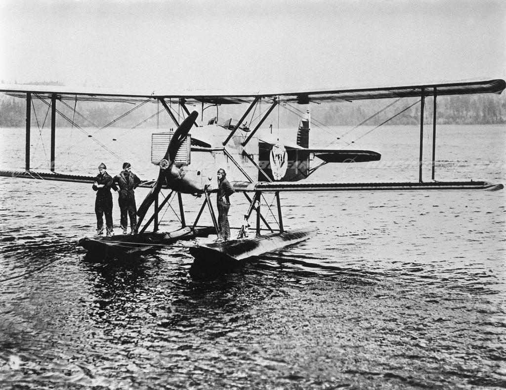 Ordered by the U.S. Army Air Service, Douglas built five Douglas World Cruisers to attempt the first flight around the world. The first DWC, a prototype delivered for test and evaluation, made its first flight in November 1923. Douglas soon received a contract for four production aircraft. On March 17, 1924, four DWCs left Clover Field, Santa Monica, Calif., for Seattle, Wash., the official starting point. While in Seattle, Boeing employees exchanged the planes' wheels for pontoon floats for the long over-water flights. It was also in Seattle that the planes were formally named for four major American cities, Seattle, Chicago, Boston and New Orleans. On April 4 the four took off from Sand Point on Lake Washington on the first leg of their long flight. The Seattle, trapped in fog on April 30, crashed on an Alaskan mountainside. After walking ten days through the frozen wilderness, the two-man crew safely reached Dutch Harbor. The other three DWCs continued on and were kept flying with the help of 15 extra engines, 14 extra sets of floats and duplicates of all airframe parts, stashed at various sites around the world. On June 26 they reached Calcutta in India where the floats were replaced with wheels. The DWCs departed Orkney Island in Scotland on July 30, again as seaplanes. On August 3, with nearly three-quarters of the flight completed, the Boston made a forced landing in the mid-Atlantic. The crew was rescued and reunited with the Chicago and New Orleans on September 3 in Nova Scotia. Two days later the prototype DWC joined the group and was named Boston II, so the original's crew could complete the flight. On September 28, as landplanes, they returned to Seattle. They had logged 27,553 miles in six months and six days, flown over 28 countries and crossed the Atlantic and Pacific Oceans. The flight was the greatest feat in aviation up to that time and earned Douglas Aircraft Company its motto, First Around the World.
