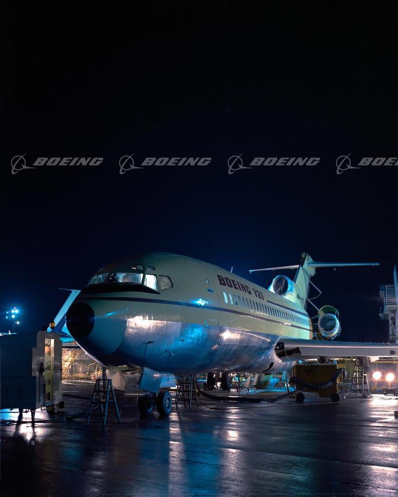 The short-to-medium-range 727 jet, which first flew in 1963, was the only Boeing-built trijet in its time. It was designed to operate out of small airports with shorter runways. The 131-passenger trijet also was the first Boeing commercial jetliner to use an auxiliary power unit (APU). The 727 jet also was built as a freighter and as a ''quick change'' version, which airlines could convert from a passenger transport to a freighter, or a combination of both, as they chose.