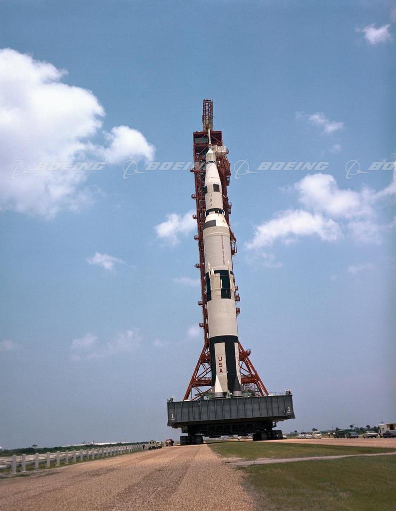 The 363-foot-tall Saturn V rocket first was launched Nov. 9, 1967 and was the launch vehicle for Project Apollo and Skylab. Boeing built the rocket’s massive S-1C first stage, North American the S-II second stage, and McDonnell Douglas the S-IVB third stage. Rocketdyne built the first stage’s five F-1 engines and the J-2 engine for the rocket’s second and third stages. Twelve Saturn Vs were used on the Apollo moon exploration program, and the 13th, in 1973, placed the McDonnell Douglas Skylab into Earth orbit. Two were placed in storage.
