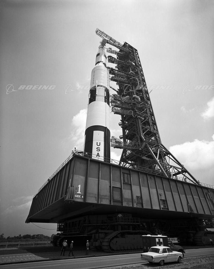 Saturn V Rocket on Crawling Gantry at Cape Kennedy