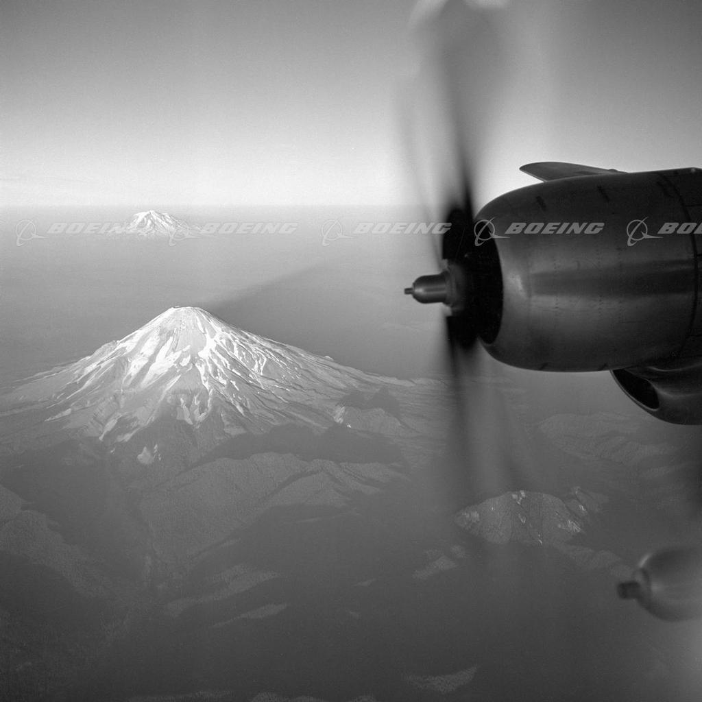 XC-97 Stratofreighter Air to Air, Flying over Mount Rainier