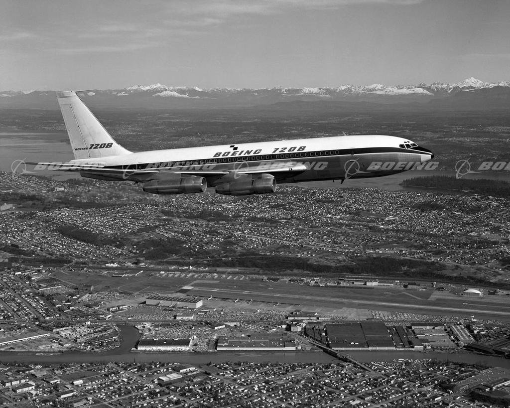 The 720 was basically at 707 modified for short to medium routes and for use on shorter runways. To make the 720 lighter than the standard 707, engineers reduced the fuselage length by 9 feet and redesigned the wing. The 720 wing had a new inboard profile and nearly full-span leading-edge flaps. It carried less fuel, which also lowered its gross weight and slightly increased its takeoff performance and top speed. Boeing built a total of 154 Model 720s, in all versions, between 1959 and 1967.