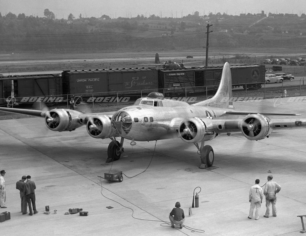 B-17E Flying Fortress Parked in Front of Boeing at Night