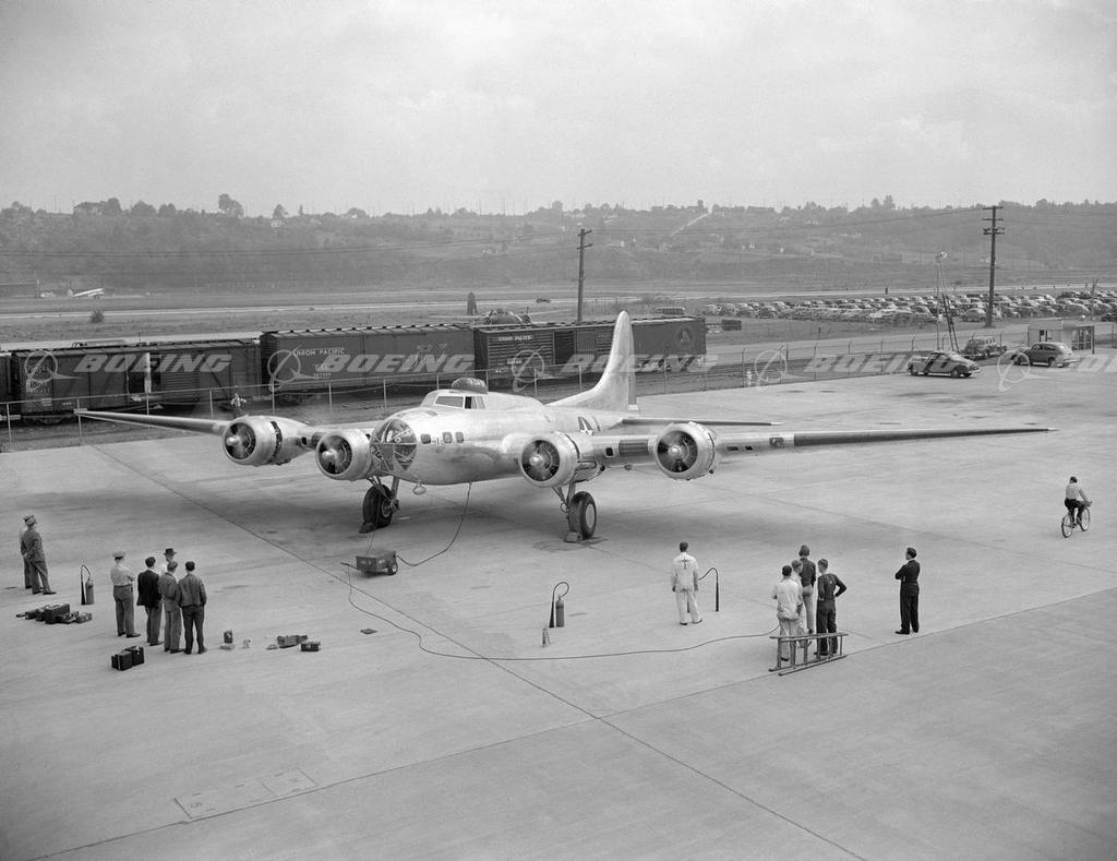 B-17E Flying Fortress Parked in Front of Boeing at Night