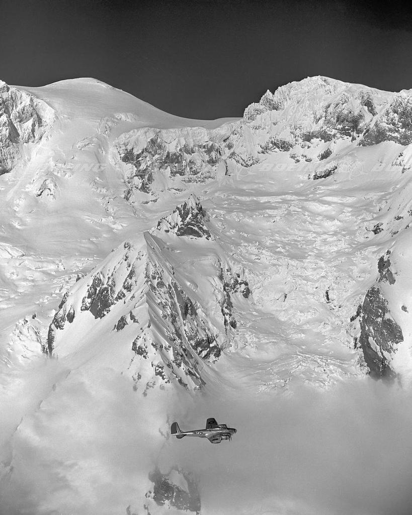 B-17C Flying Fortress Flying Over Dramatic Mountain Landscape