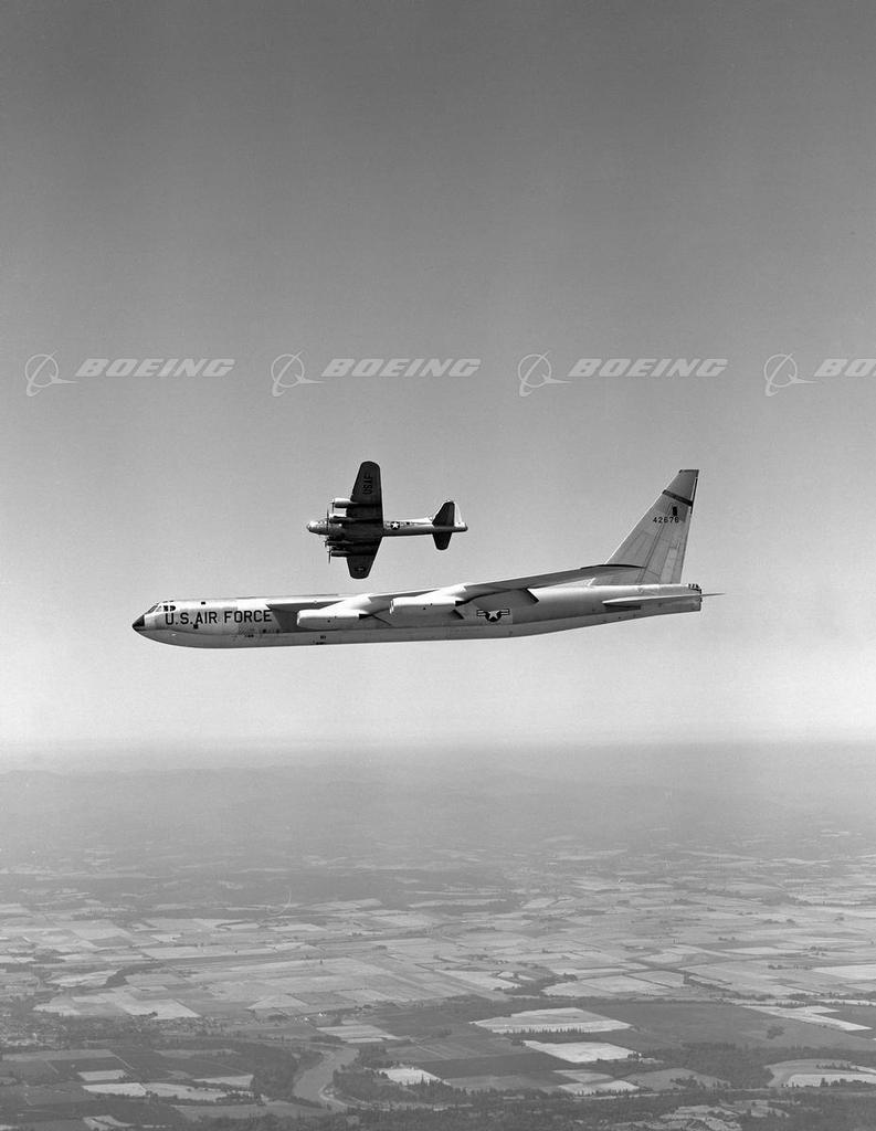 Boeing Bombers, B-52, B-47, B-29 and B-17 in Flight Together
