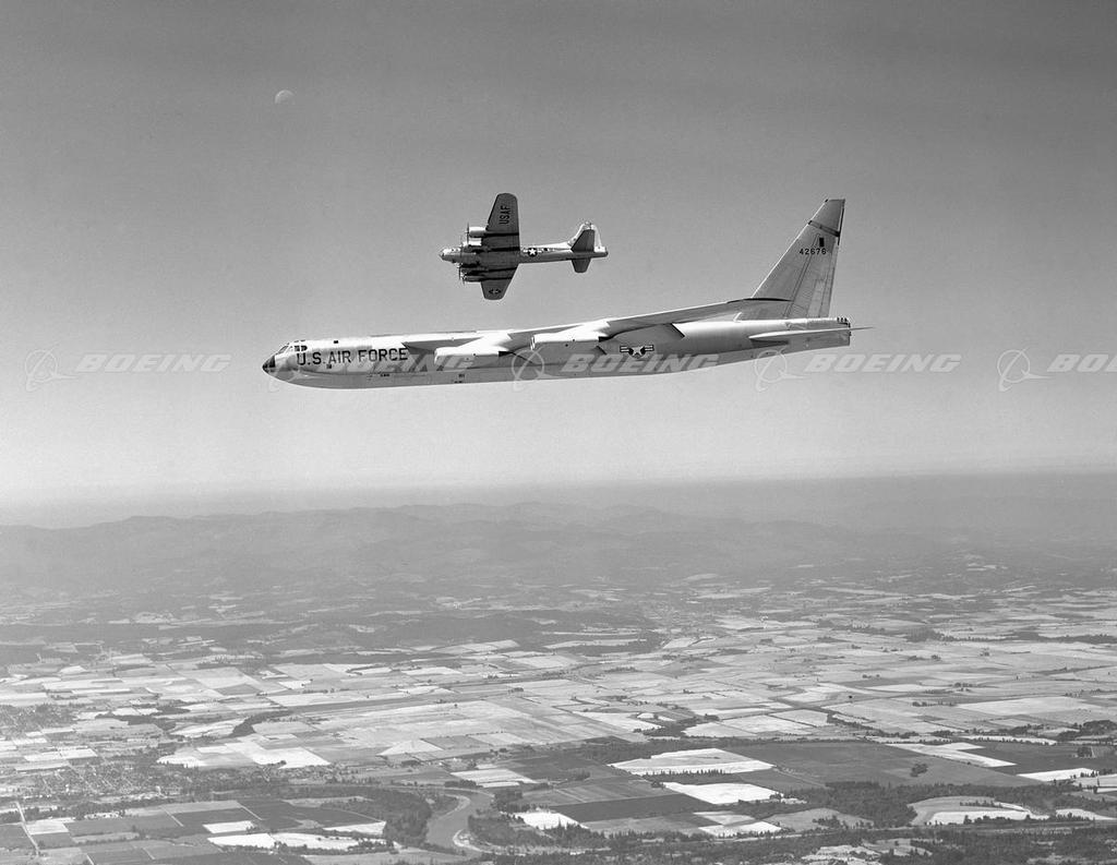 Boeing Bombers, B-52, B-47, B-29 and B-17 in Flight Together