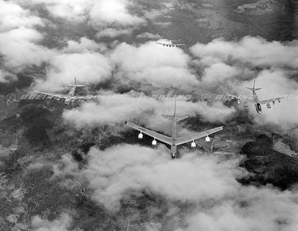 Boeing Bombers, B-52, B-47, B-29 and B-17 in Flight Together