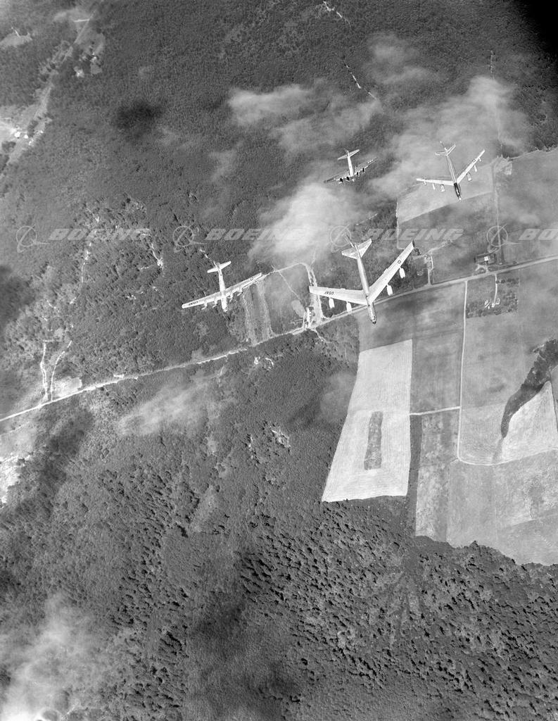 Boeing Bombers, B-52, B-47, B-29 and B-17 in Flight Together