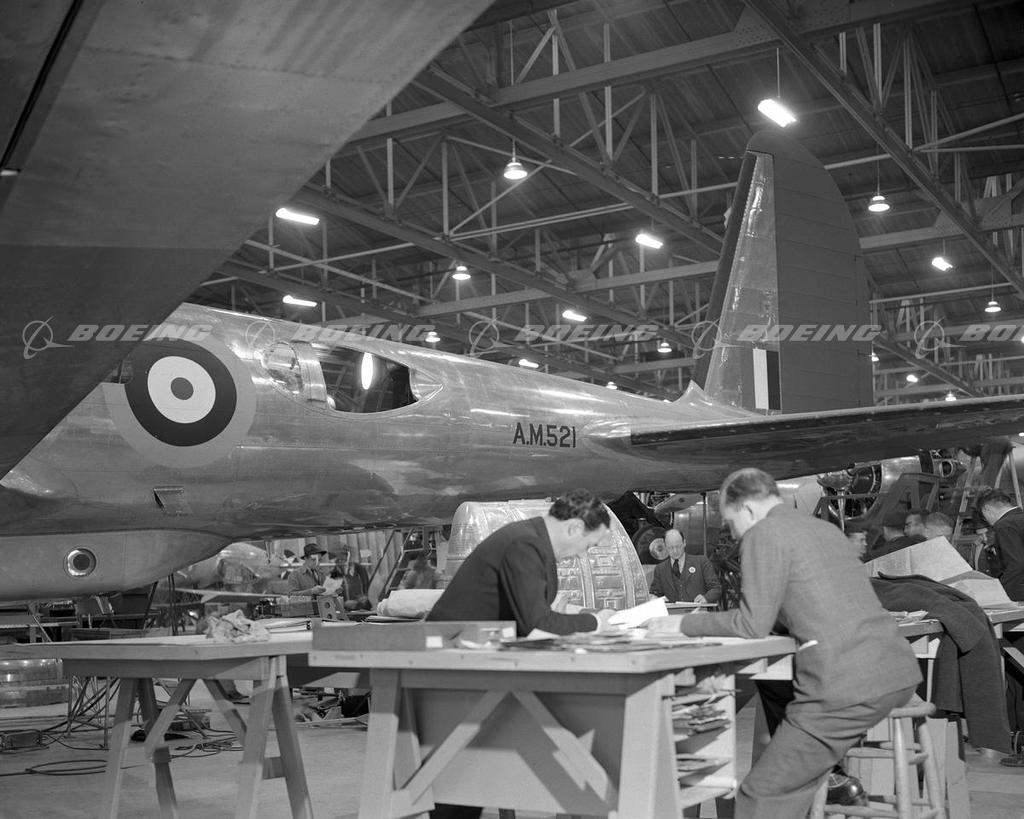 Woman Cleaning B-17 Flying Fortress Tail Section Under Construction