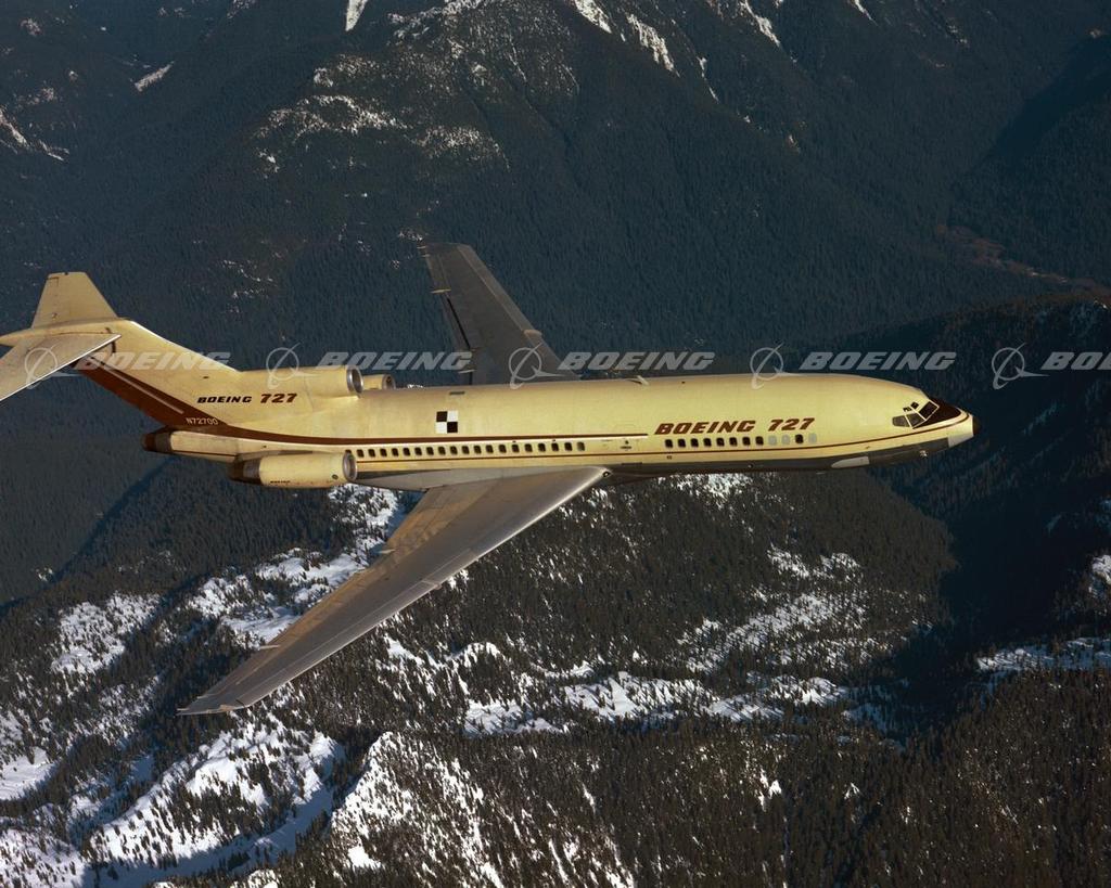 The short-to-medium-range 727 jet, which first flew in 1963, was the only Boeing-built trijet in its time. It was designed to operate out of small airports with shorter runways. The 131-passenger trijet also was the first Boeing commercial jetliner to use an auxiliary power unit (APU). The 727 jet also was built as a freighter and as a ''quick change'' version, which airlines could convert from a passenger transport to a freighter, or a combination of both, as they chose.