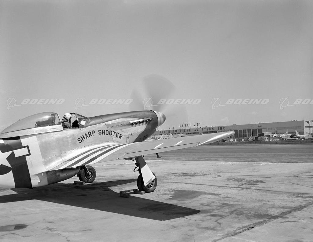 Late Model P-51 Mustang in Front of North American Aviation Plant