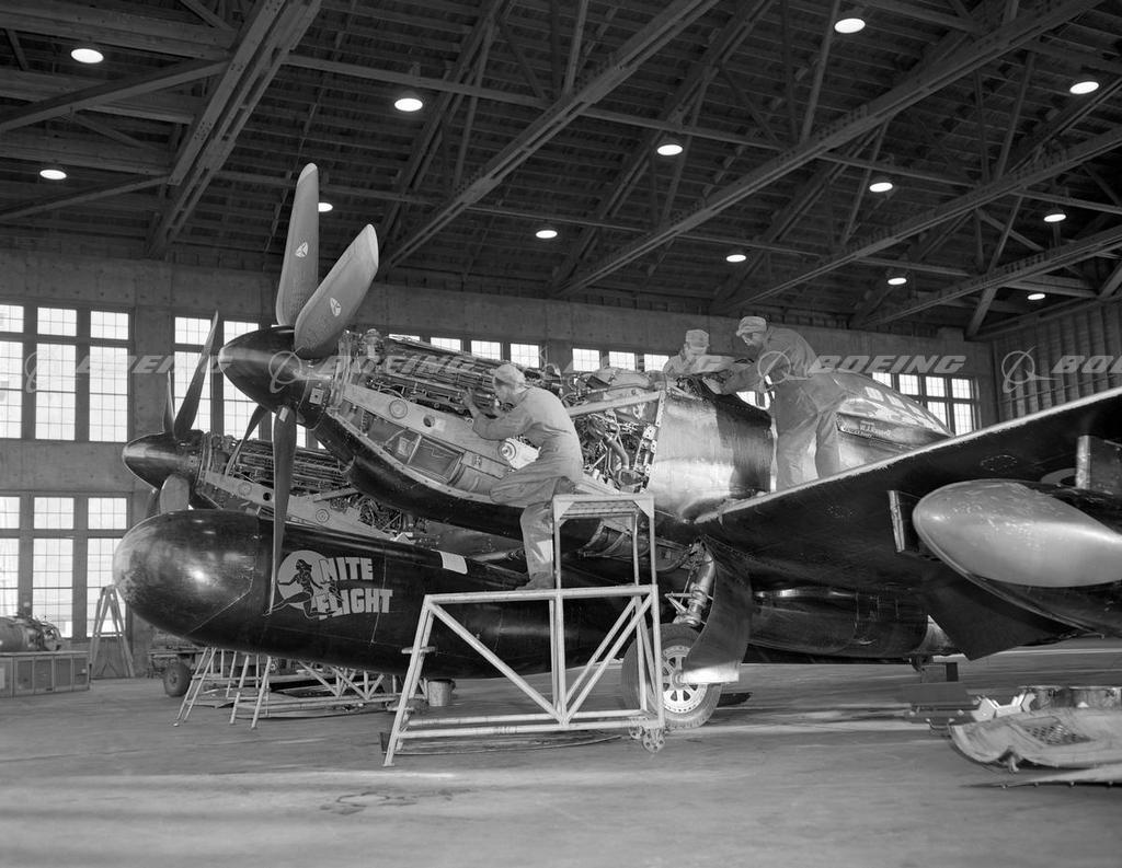 P-82 Twin Mustang with Radar Pod Undergoing Maintenance