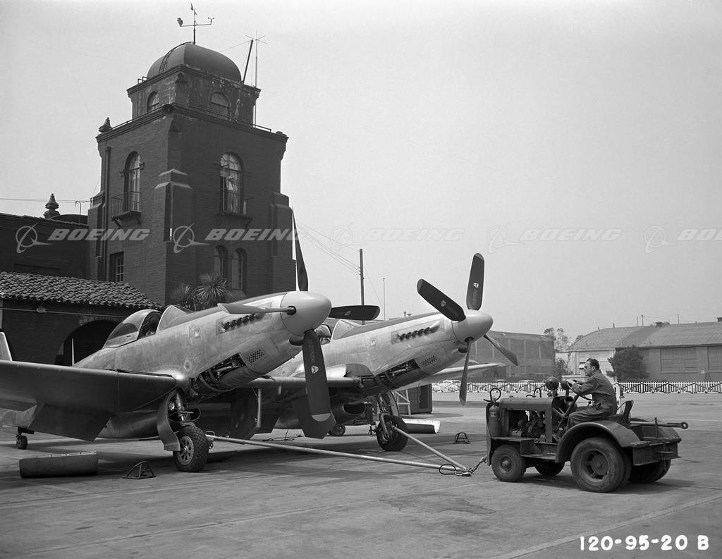 P-51A and P-51B Mustangs on Tarmac with Ice Cream Truck