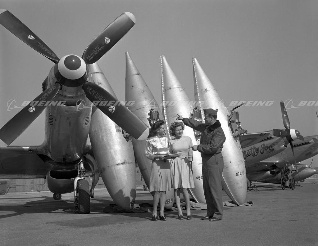 P-82 Twin Mustang Betty Joe with Women Sitting on Drop Tanks