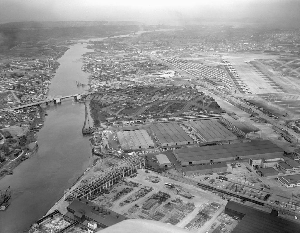 After the start of World War II, burlap houses and chicken-wire lawns camouflaged the rooftops of Boeing Plant 2 in Seattle so that, from the air, the bomber manufacturing center looked like a quiet suburb.