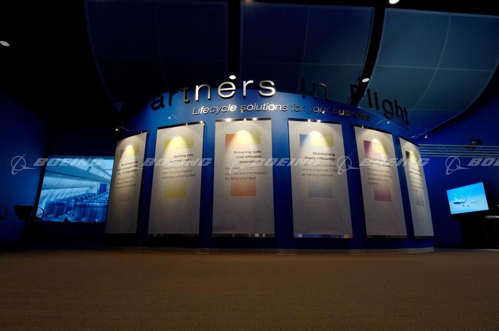 At the new Customer Experience Center in Renton, Wash., Commercial Airplanes' airline customers will see for themselves why Boeing products and services are world-class in innovation, technology and lifetime fleet support—and how choosing Boeing will strategically advance their business plans. Displays feature interiors of the Boeing 787, 777 and 737 airplanes, with plans to add a 747-8 passenger mockup. Additional product features include the premium ceiling and signature seat interiors from a 777-200LR during last year's "Going the Distance" world tour and a 777 overhead crew rest display. The Customer Solutions Studio demonstrates to Boeing partners and customers how to provide business solutions throughout the product life cycle—from acquisition to operations and maintenance, and beyond.