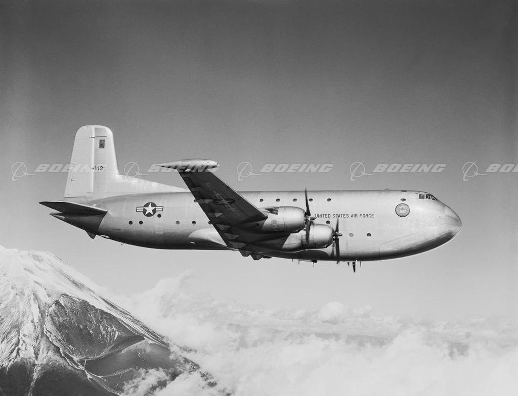 Douglas C-124 Globemaster II (1949-1955): The C-124 Globemaster II was an improved version of the 1945 Douglas C-74 Globemaster. The C-124 featured a gigantic fuselage, with clamshell doors under the plane's nose that allowed dive-in access to a cargo compartment almost 12 foot high. It made its first flight on November 27, 1949 from the Douglas plant at Long Beach, Ca. Its delivery to the U.S. Air Force coincided with the onset of the Korean War and the C-124 played an important role in the airlift of supplies to the Far East. The C-124 could carry more cargo, longer distances than any other military transport of the time. It could accommodate 200 troops, or 123 stretchers, or up to 74,000 pounds of cargo. The last of 448 C-124 Globemaster IIs were delivered to the Air Force in 1955, but the big plane's dependability allowed it to remain in service until 1978.