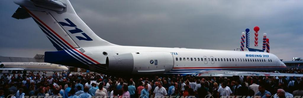 The Boeing 717 was specifically designed for the short-haul, high frequency 100-passenger airline market. The highly efficient 717 concluded its production run in May 2006, though the airplane will remain in service for years to come. The airplane was originally part of the McDonnell Douglas airplane family and designated the MD-95 prior to merger with The Boeing Co. in 1997. The program produced 156 717s and pioneered breakthrough business and manufacturing process for Boeing Commercial Airplanes.