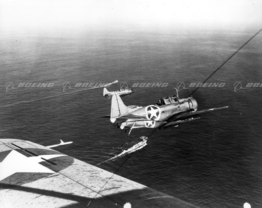 The Douglas SBD Dauntless dive bomber became a mainstay of the Navy's World War II air fleet in the Pacific, with the lowest loss ratio of any U.S. carrier-based aircraft. The SBD Dauntless featured "Swiss cheese" flaps -- dive brakes punched with 3-inch holes -- so that it could achieve pinpoint accuracy by diving to the target, dropping the bomb and then pulling out of the near-vertical dive.