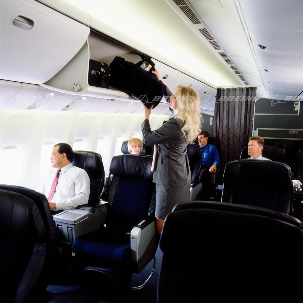 The 777 was designed especially for comfort on longer flights. The 777 is 30.9 inches (78.4 centimers) wider than its Airbus counterpart, the A330/340. This extra elbowroom makes the 777 the widest airplane in its class, allowing for roomier aisles and seats. Although individual airline customers choose seating configurations, once an interior is configured, the extra width makes a difference in coach, business, and economy classes. When airlines opt to seat nine abreast in economy class, for example, the seats can be 18 1/2 inches (46.99 centimeters) wide - the widest in the industry. In business class, seating can accommodate 20-inch (50.8 centimeter) wide seats, the same size as first-class seats on many competing airplanes.