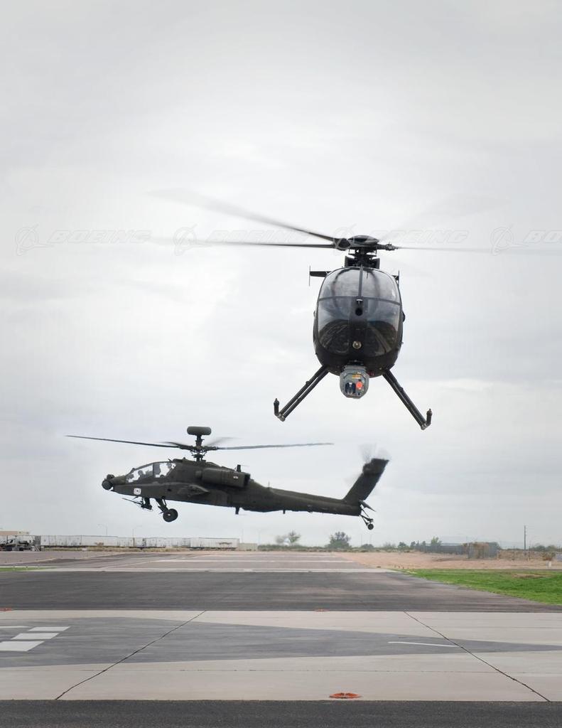 MH-6 Little Bird UAV with AH-64D Apache Longbow