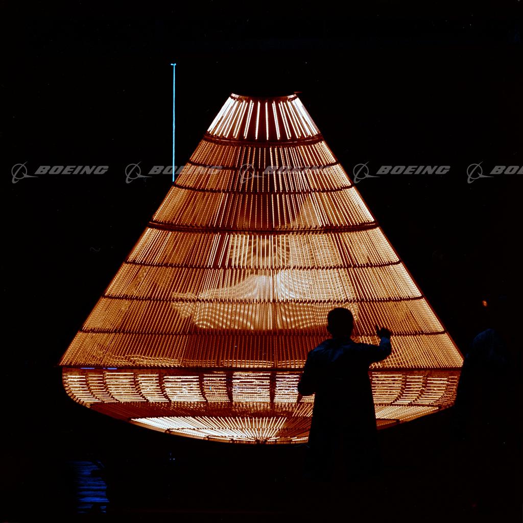 The Apollo command and service modules were built at North American Aviation's plant at Downey, California. The many things that could doom the crew made ground-testing all the more important, so the company built a 150-foot-high Impact Test Facility. It looked like a gigantic playground swing and checked the module's structural integrity and impact loads by drop-testing it on water, sand, gravel and boulders.