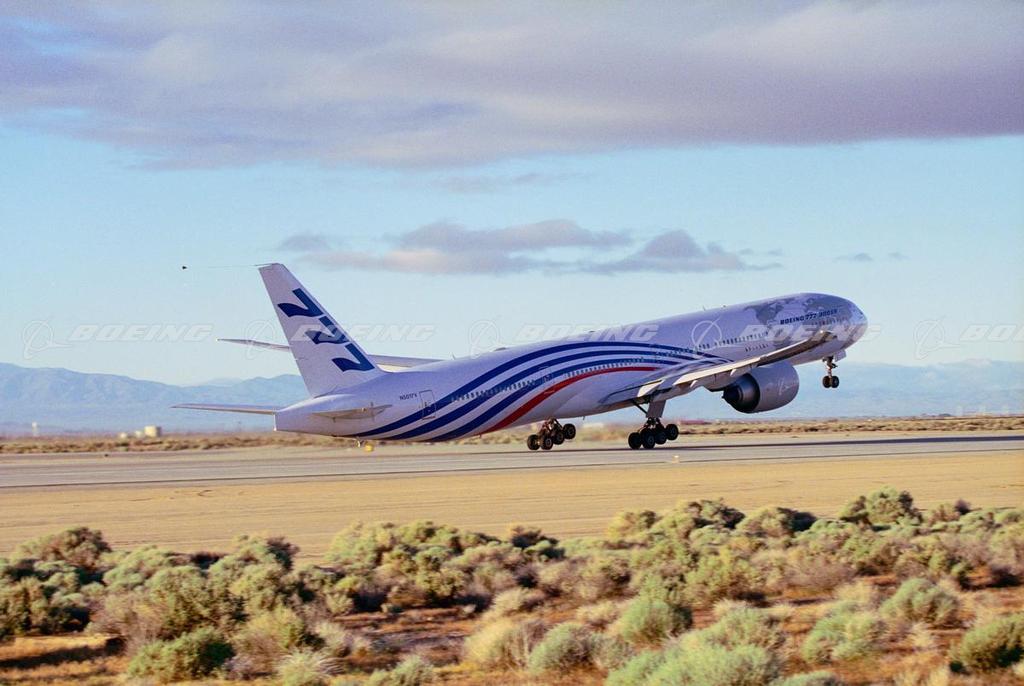 A Boeing 777-300ER (Extended Range) on the Desert Runway at Edwards Air Force Base, Calif.