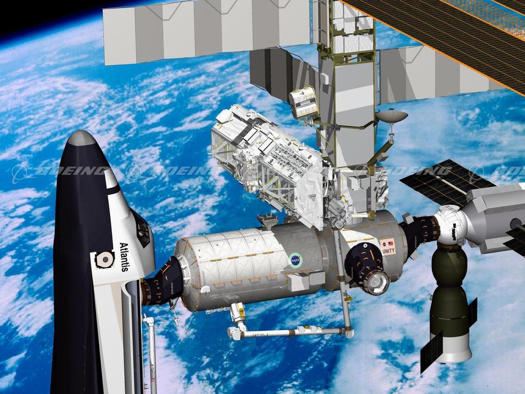 Space Shuttle Atlantis Installs the S0 Truss on the International Space Station