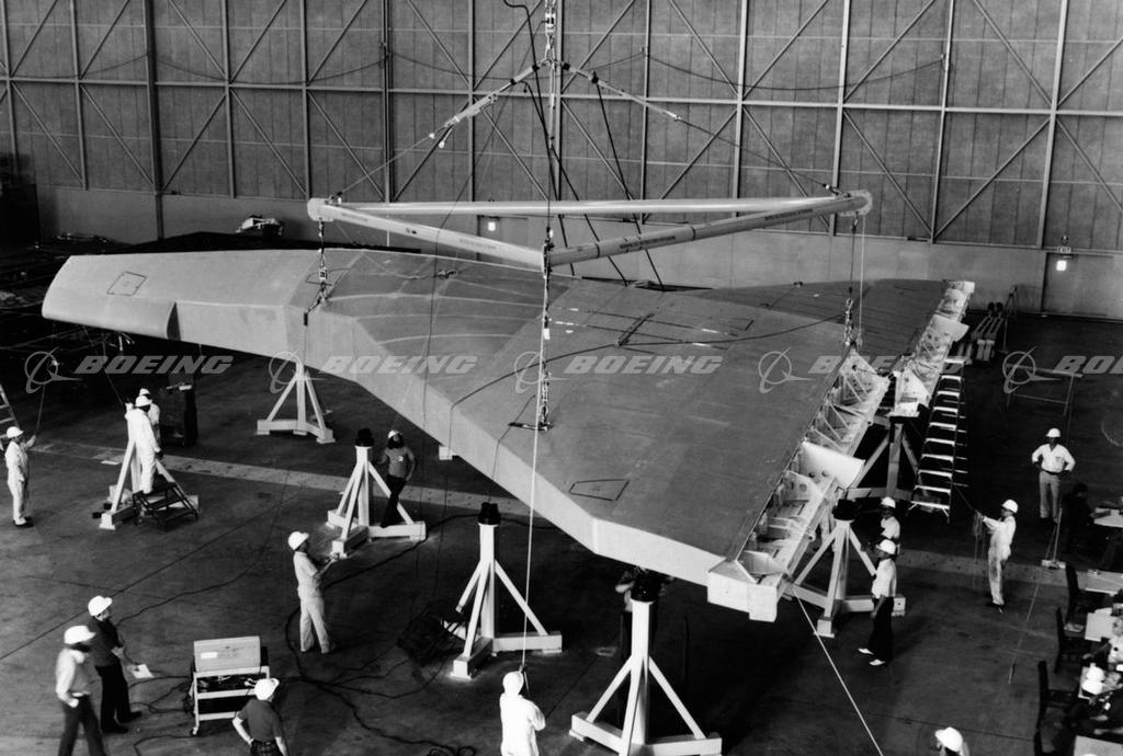 Wings of the future - The first set of wings for the Space Shuttle orbiter are set on work stands at Palmdale, California in 1975, where the final assembly and checkout of the orbiter spacecraft was to take place. The two wing panels were built by Grumman Aerospace Corporation, Long Island, New York. Each measures 30 feet from tip to fuselage and 60 feet in width where they join the main fuselage. Rockwell International Corporation's Space Division in Downey, California, built the orbiter and integrated the complete Space Shuttle system for NASA's Johnson Space Center.