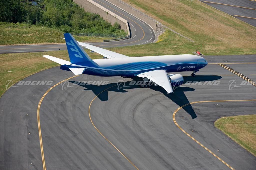 First Boeing 777 Freighter Taxies on the Runway Towards its First Flight