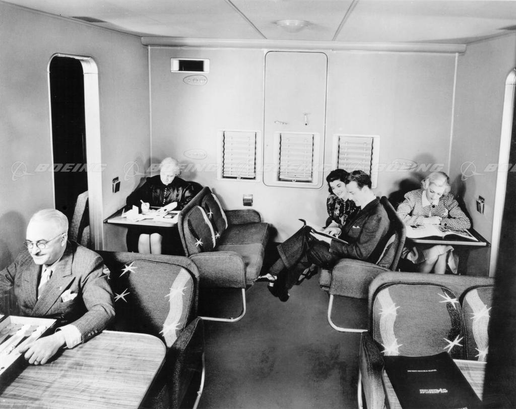 Passengers Relax in the 377 Stratocruiser's Lower Deck