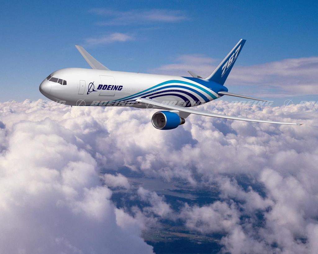 A 767-300 passenger aircraft undergoes major modifications during passenger-to-freighter (PTF) conversion. First, the passenger interiors, equipment, and furnishings are removed; and then a main-deck side cargo door is installed and the main-deck floor structures are replaced or strengthened. Next, a 9-G rigid cargo barrier and a new cargo handling system are installed. Airlines may also consider adding features such as carbon brakes, avionics and flight-deck upgrades, live animal and perishable food carriage, weight increases and integration of technical manuals during the PTF conversion.